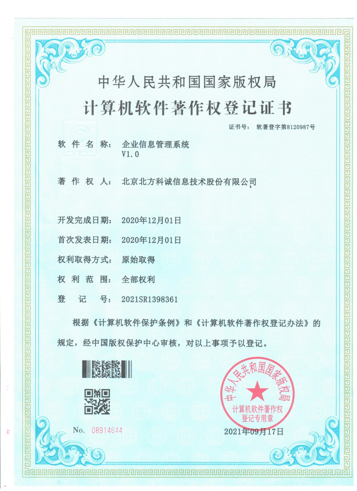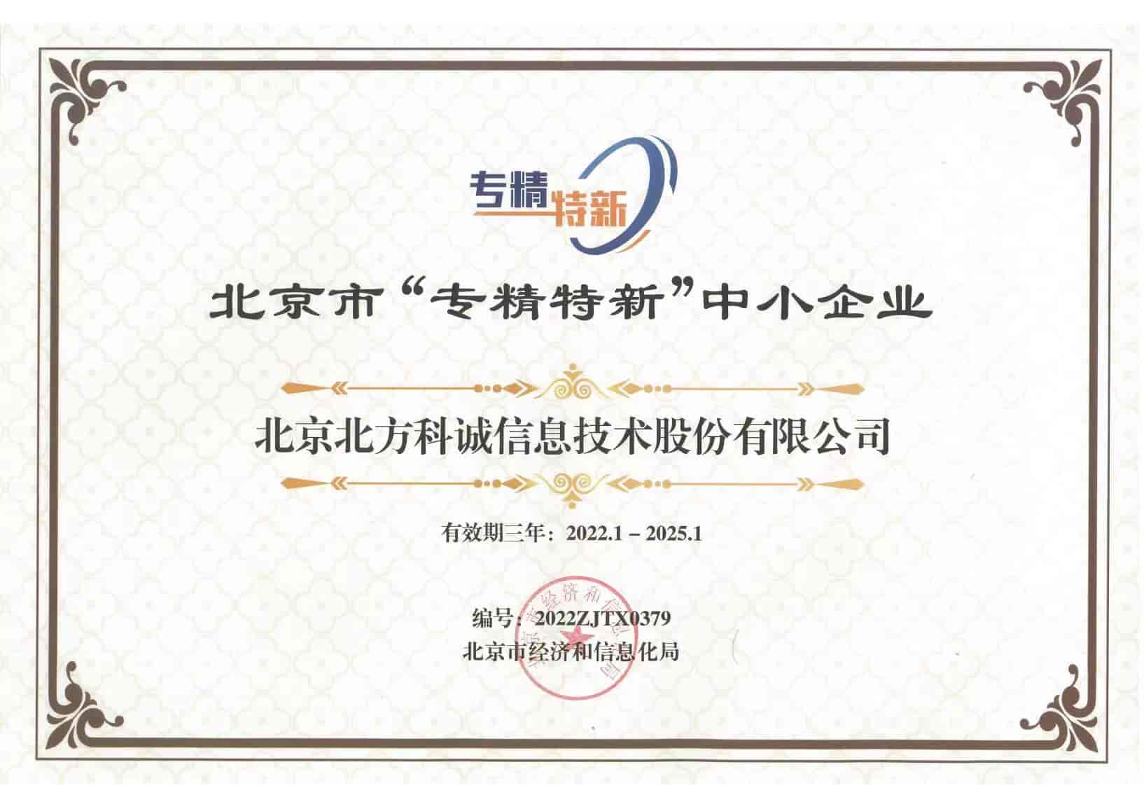 北方科诚是专精特新企业,拥有完整的自主知识产权,已获得多项发明专利和88项软件著作权,通过国家高新技术企业和双软企业认定,并于2012年11月挂牌新三板,股票代码430158。